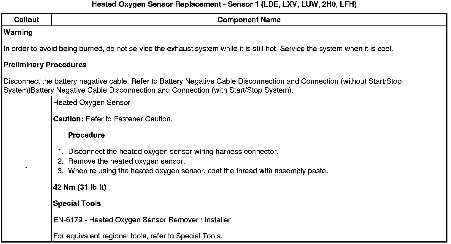 Heated Oxygen Sensor Replacement - Sensor 1 (LDE, LXV, LUW, 2H0)