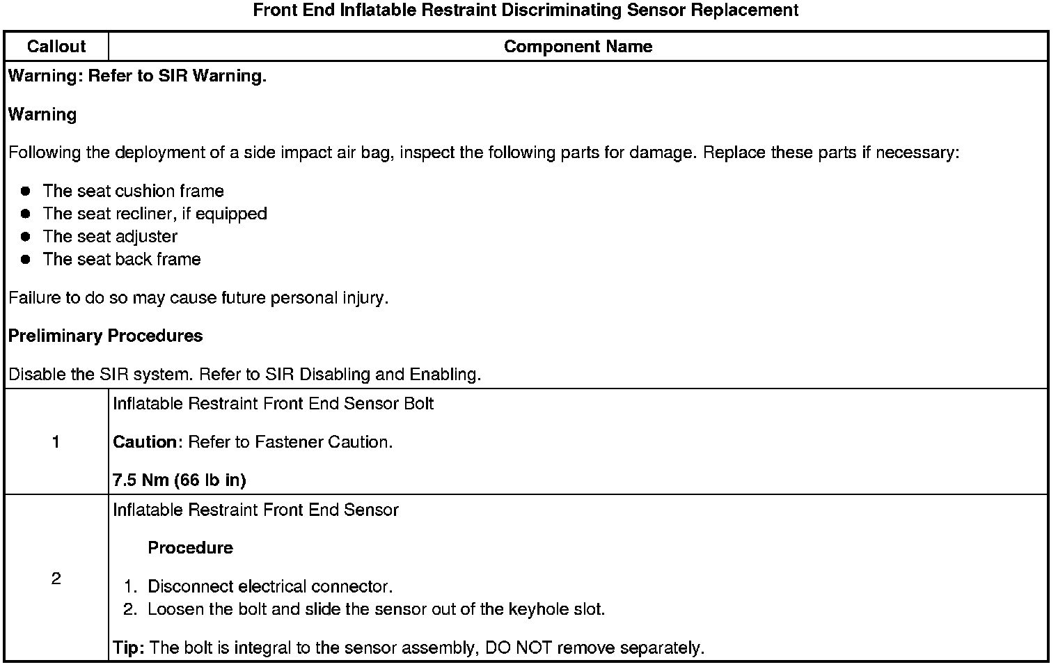 Front End Inflatable Restraint Discriminating Sensor Replacement