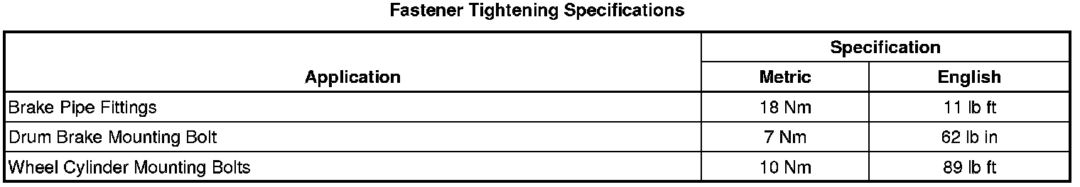 Drum Brake Component Specifications