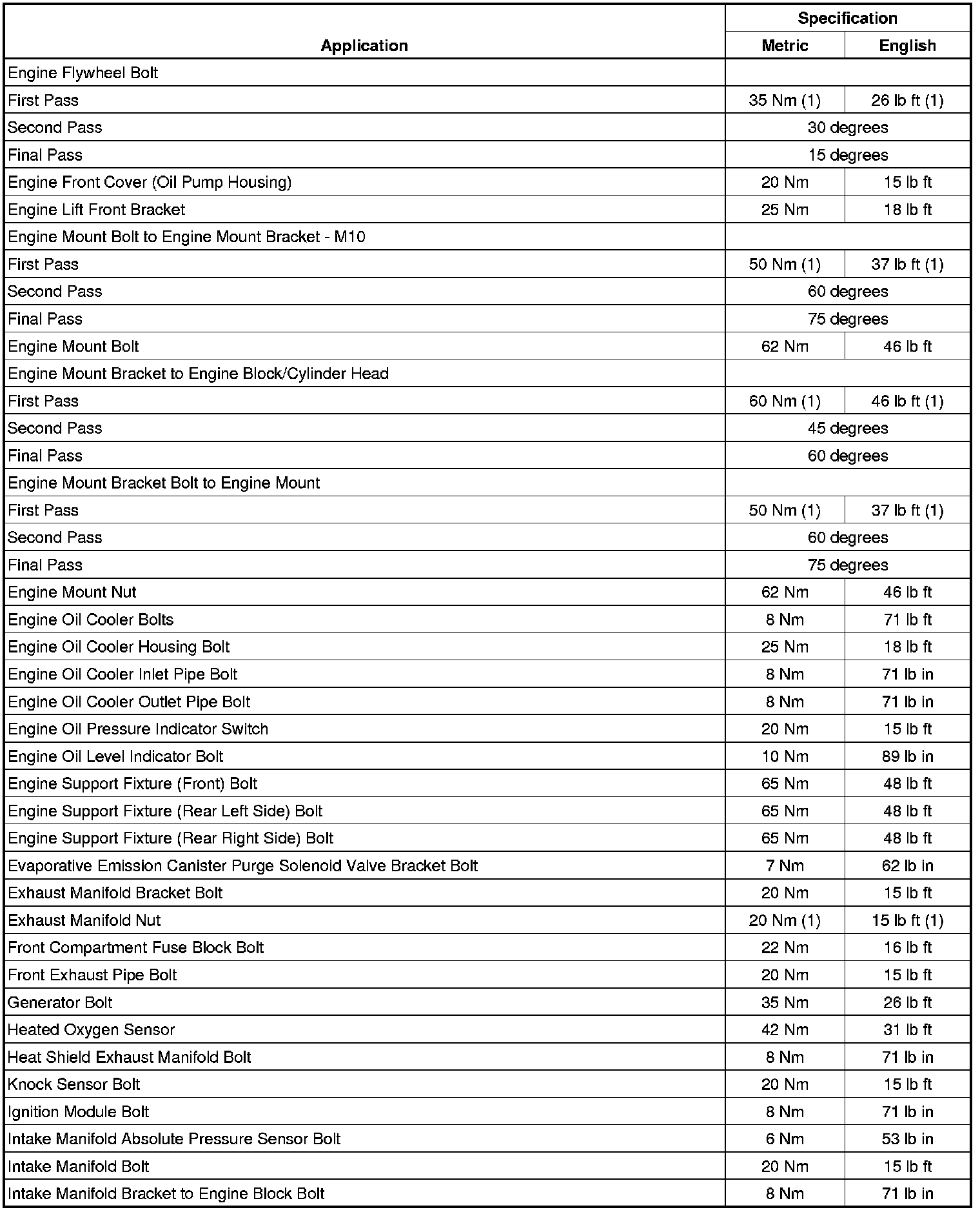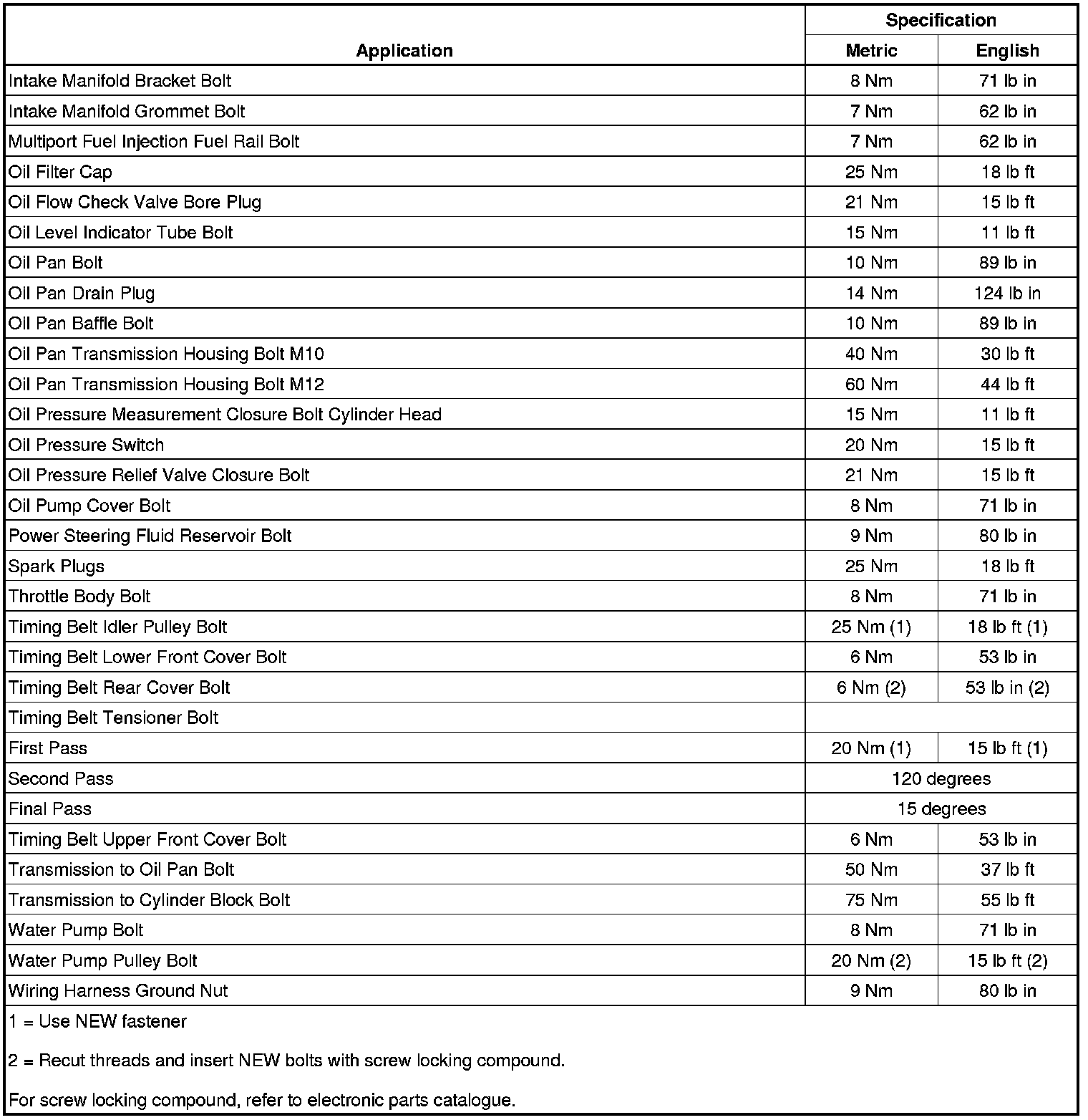Fastener Tightening Specifications
