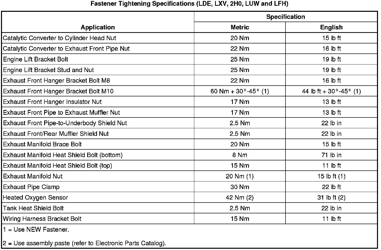 Fastener Tightening Specifications (LDE, LXV, 2H0, LUW and LFH)