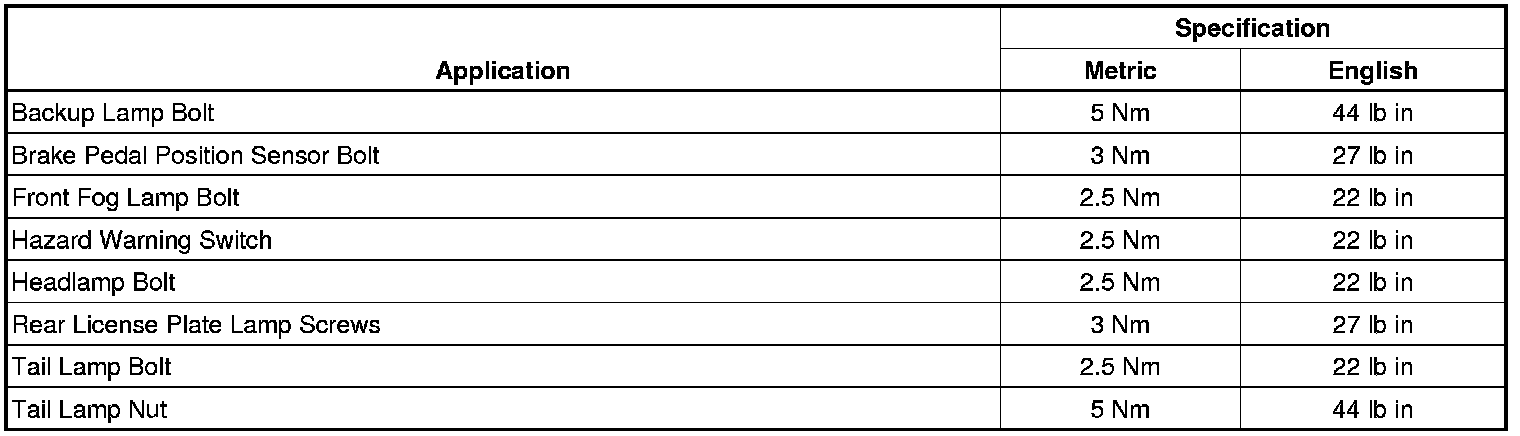Fastener Tightening Specifications