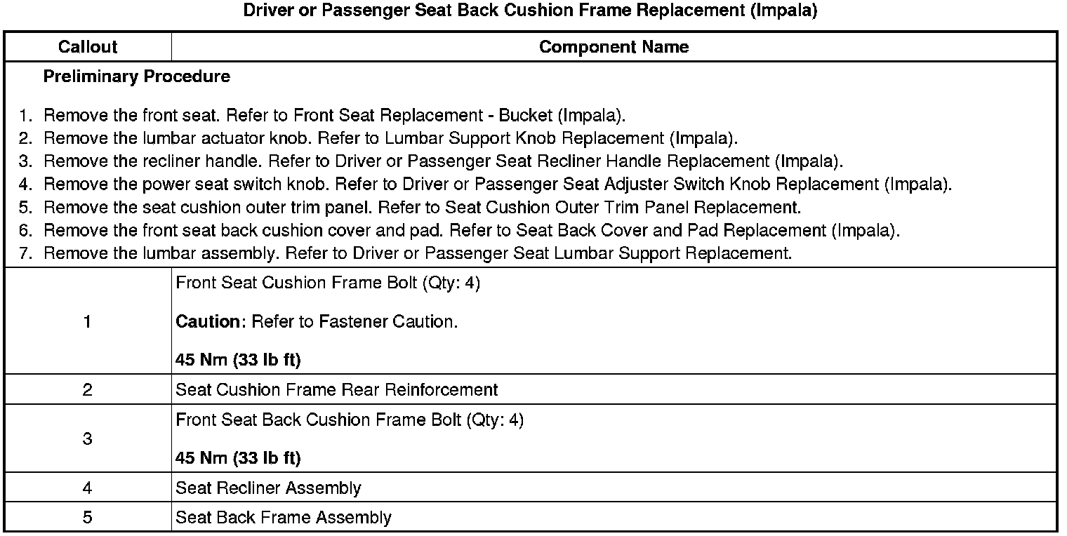 Driver or Passenger Seat Back Cushion Frame Replacement
