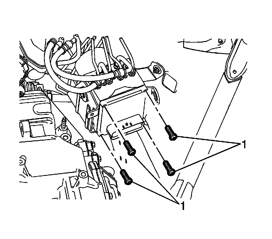2. Install the EBCM bolts (1) and tighten to 3 Nm (27 lb in).