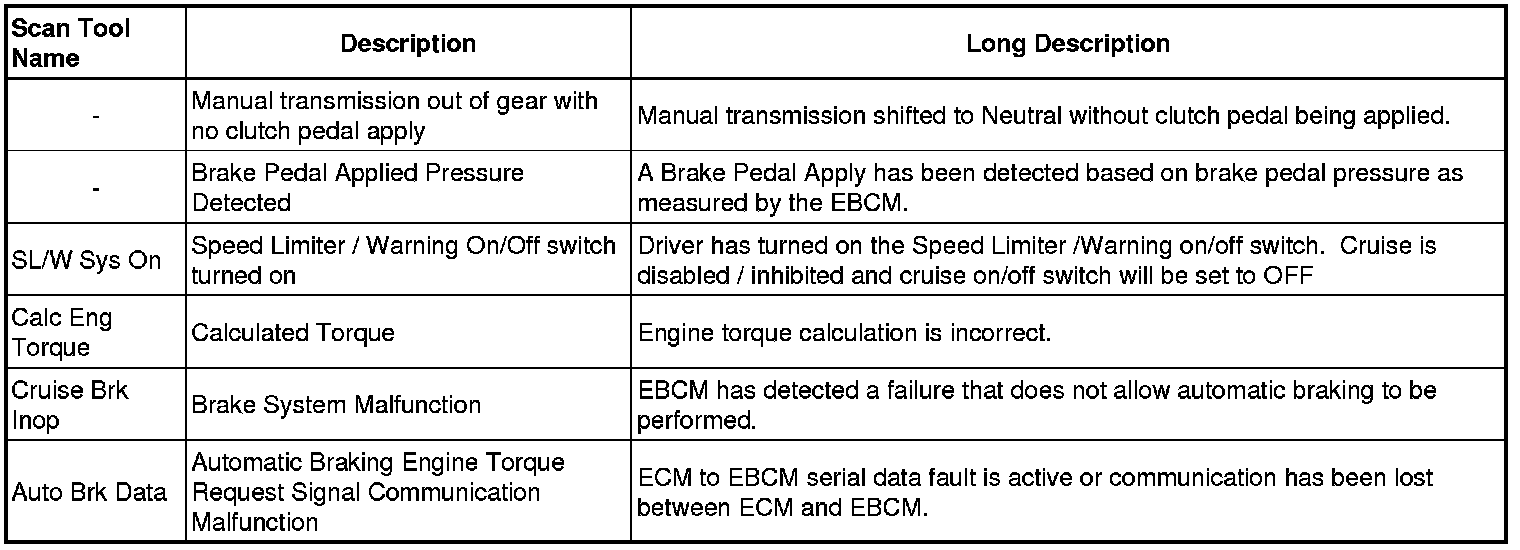 Cruise Control Inhibit Reasons
