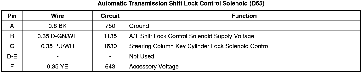 Automatic Transmission Shift Lock Control Solenoid (D55)