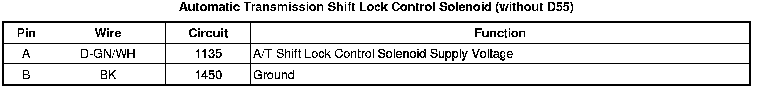 Automatic Transmission Shift Lock Control Solenoid (without D55)