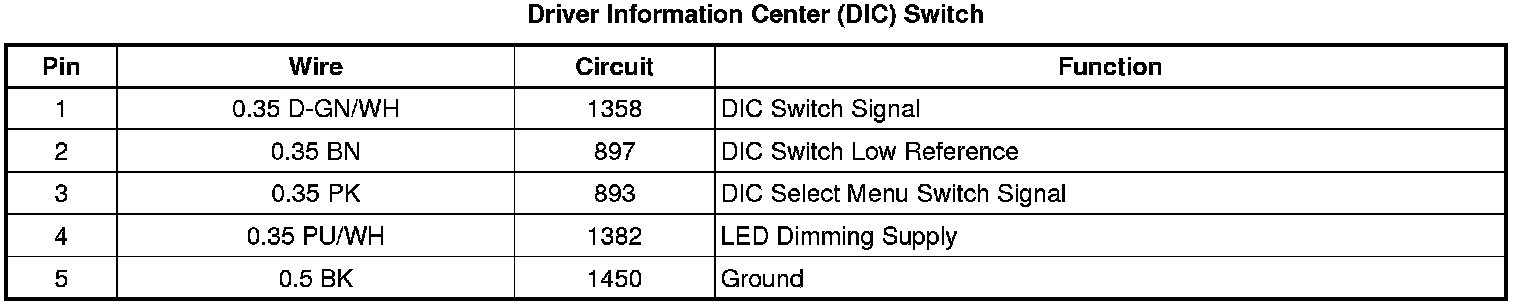 Driver Information Center (DIC) Switch