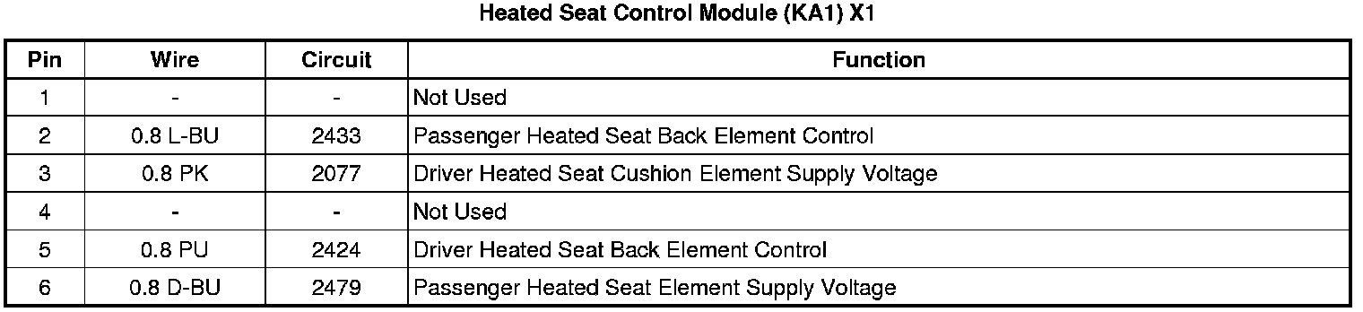 Heated Seat Control Module (KA1) X1