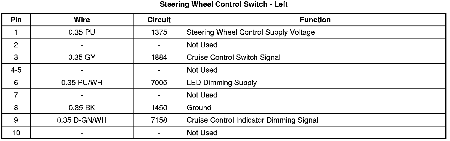 Steering Wheel Control Switch - Left