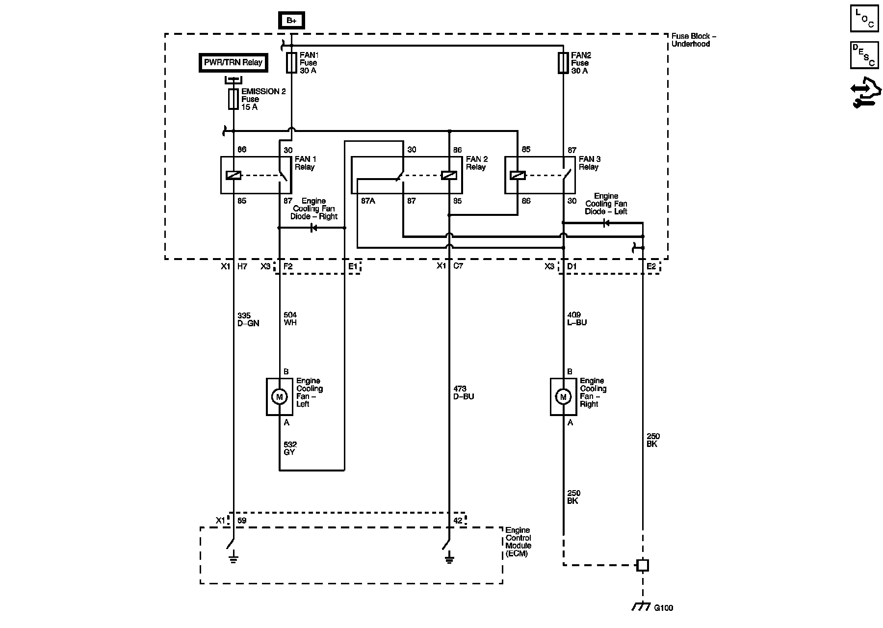 A/C CMPRSR, EMISSIONS 1, and EMISSIONS 2 Fuses