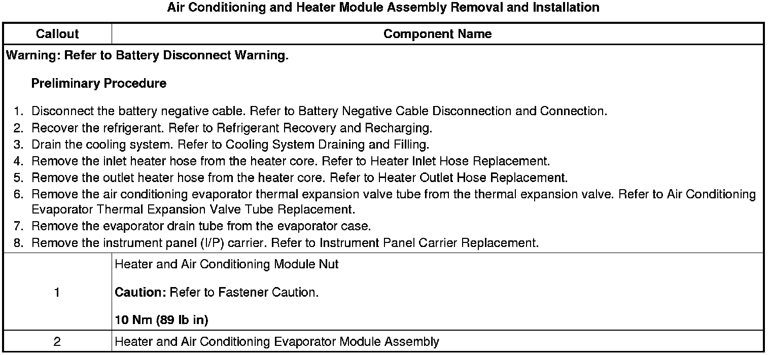 Air Conditioning and Heater Module Assembly Removal and Installation