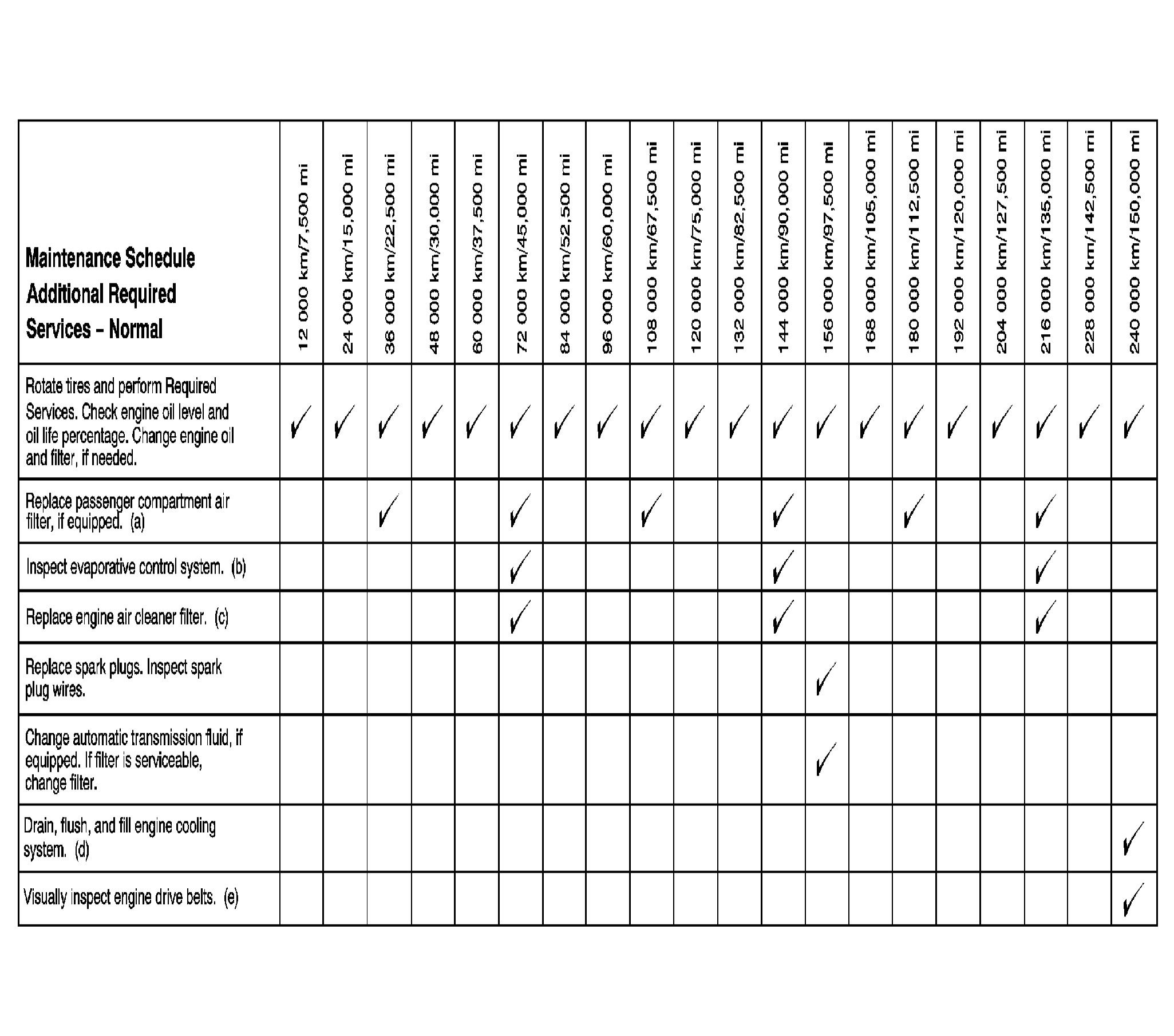Footnotes - Maintenance Schedule Additional Required Services - Normal