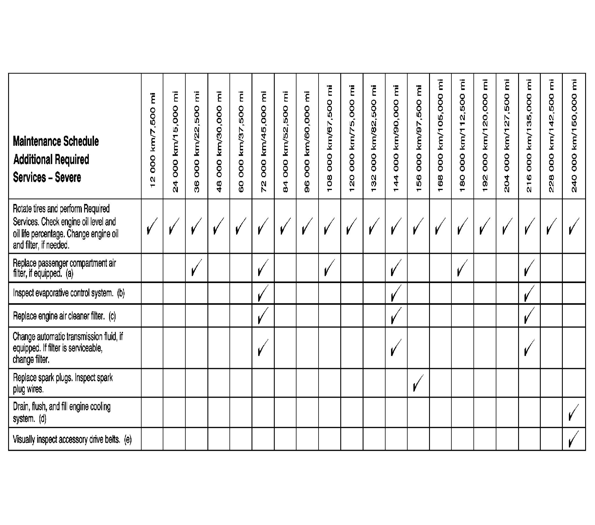 Footnotes - Maintenance Schedule Additional Required Services - Severe