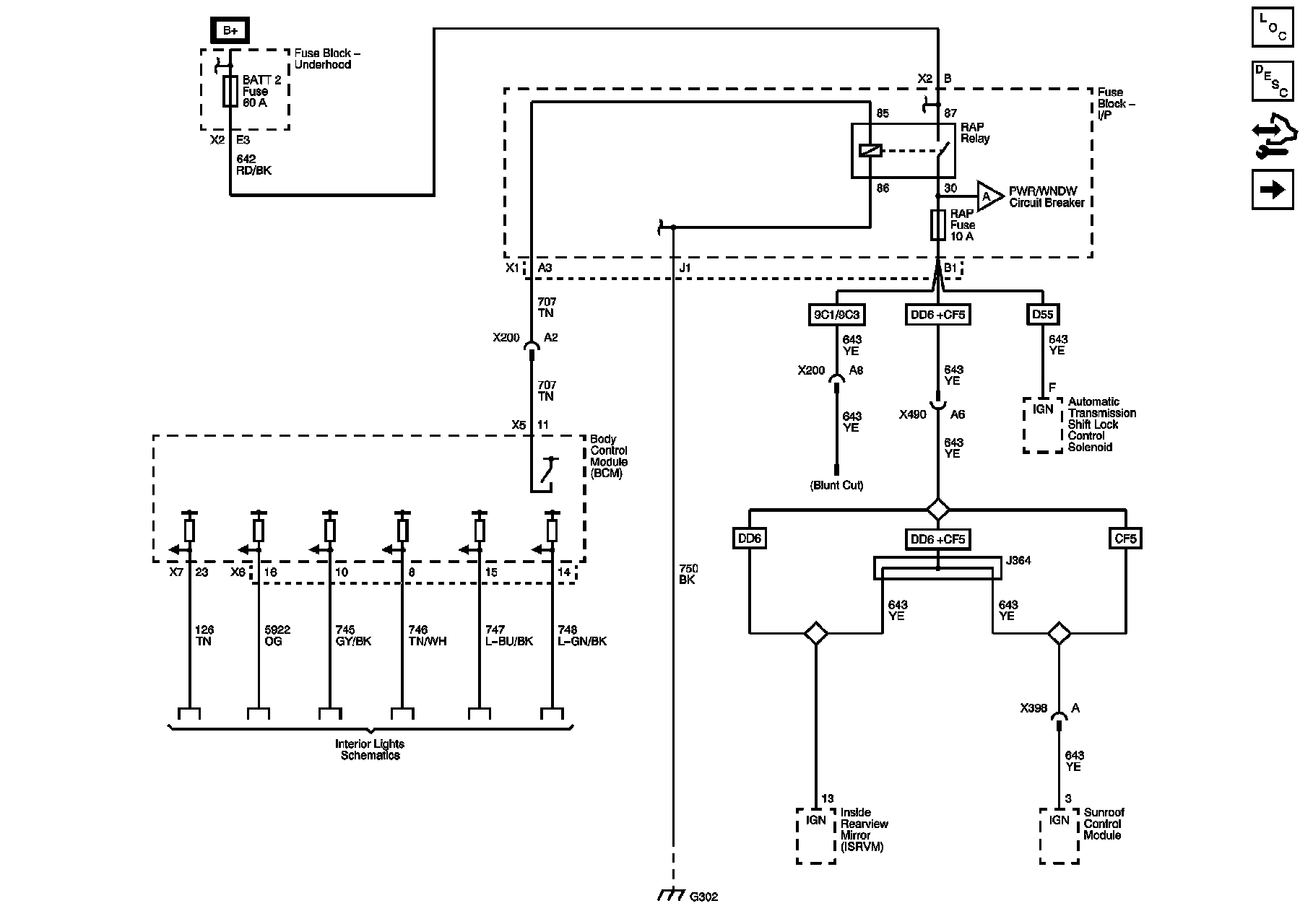DR/LCK, RAP, S/ROOF Fuses