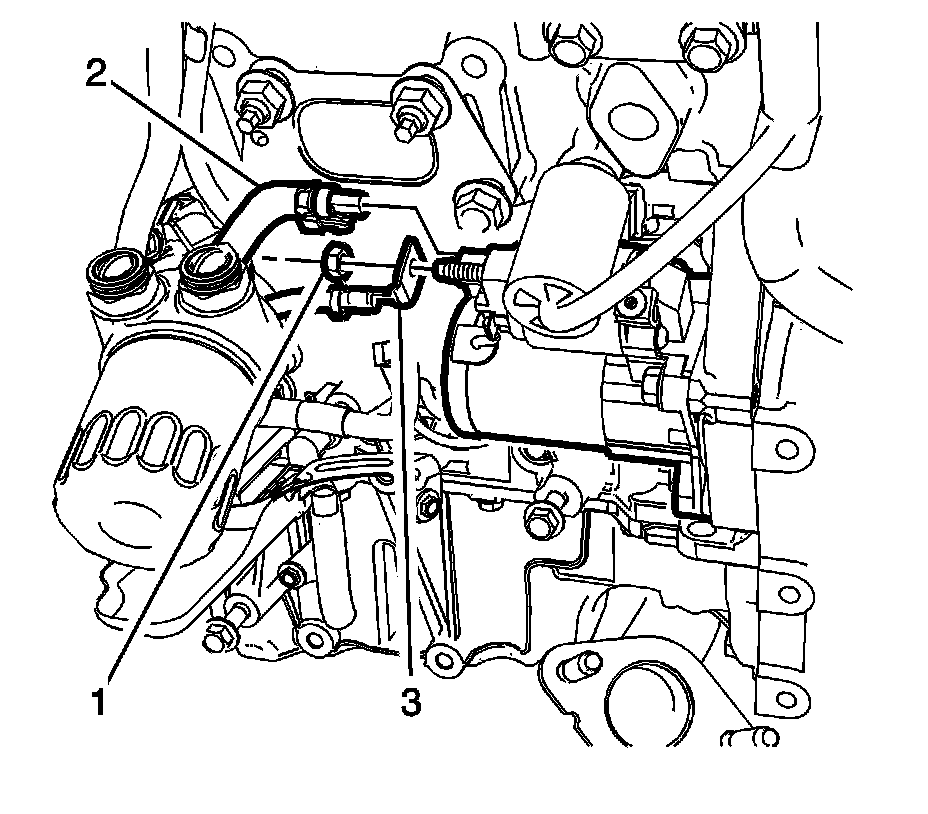 8. Tighten the upper starter fastener (1) to 58 Nm (43 lb ft).