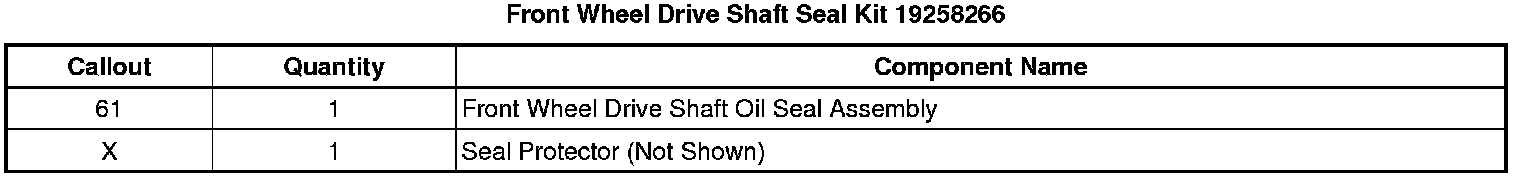 Front Wheel Drive Shaft Seal Kit 19258266