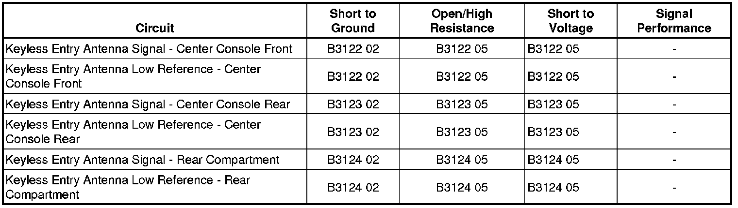 Refer to Keyless Entry System Malfunction (Active) Keyless Entry System Malfunction (Active)Keyless Entry System Malfunction (Passive) Keyless Entry System Malfunction (Passive).