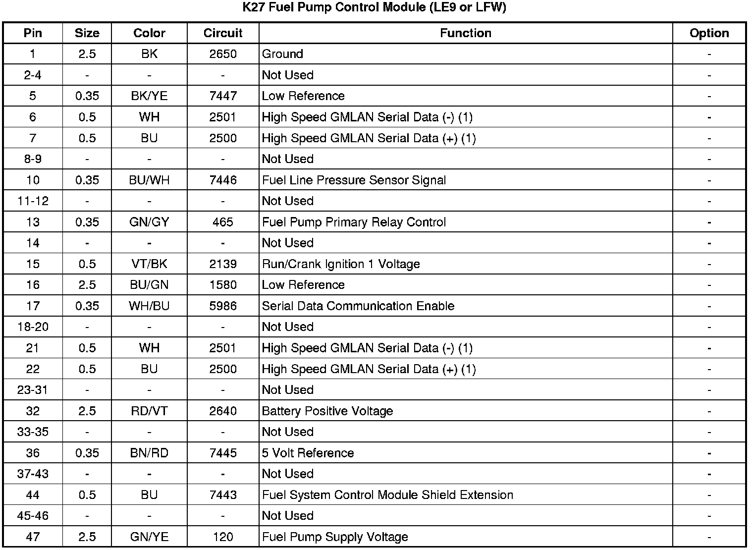K27 Fuel Pump Control Module (LE9 or LFW)