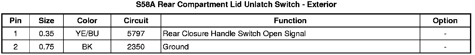 S58A Rear Compartment Lid Unlatch Switch - Exterior