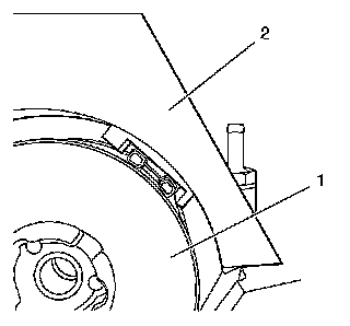 3. Rotate the crankshaft balancer mark (1) to the oil pump housing mark (2).