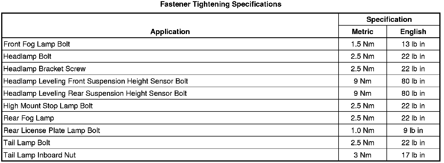 Fastener Tightening Specifications