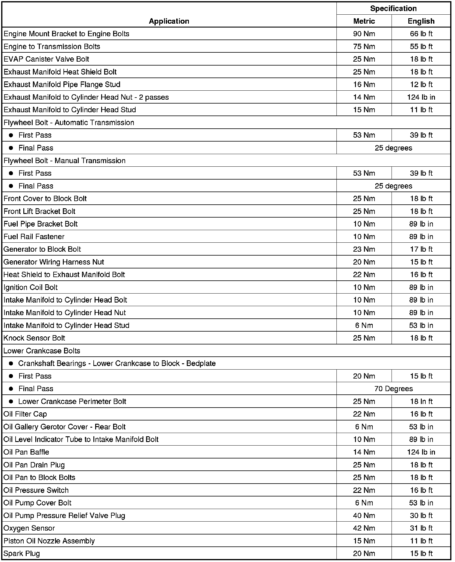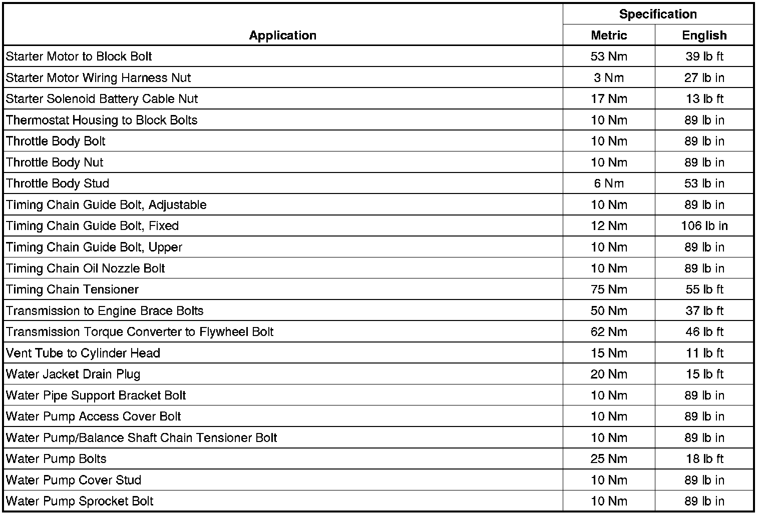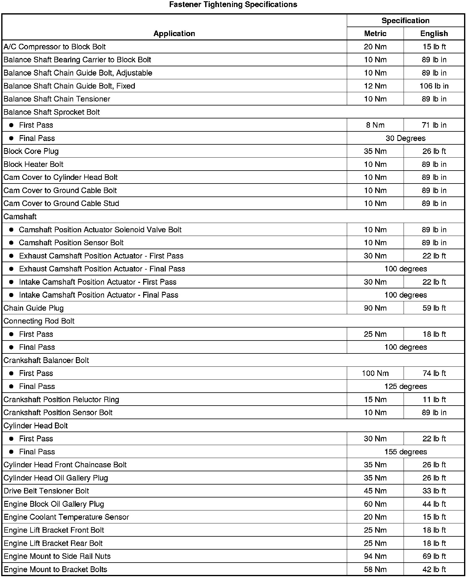 Fastener Tightening Specifications