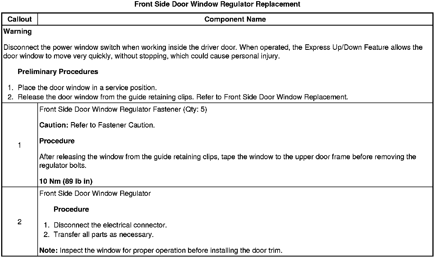 Front Door Window Regulator: Service and Repair