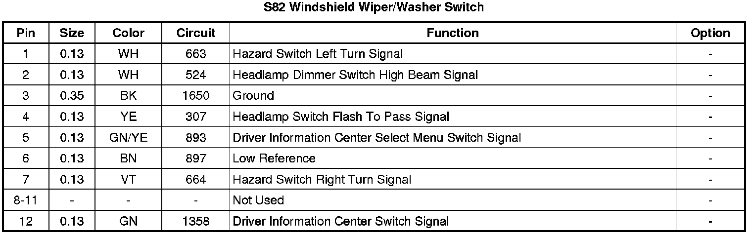 S82 Windshield Wiper/Washer Switch