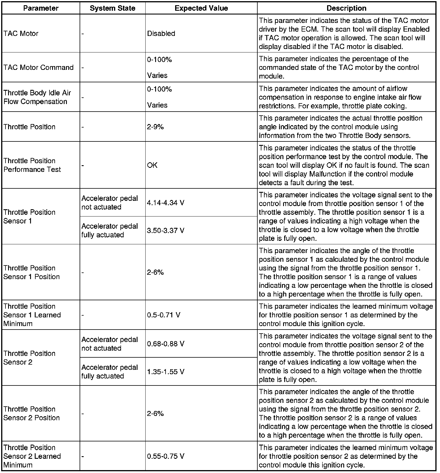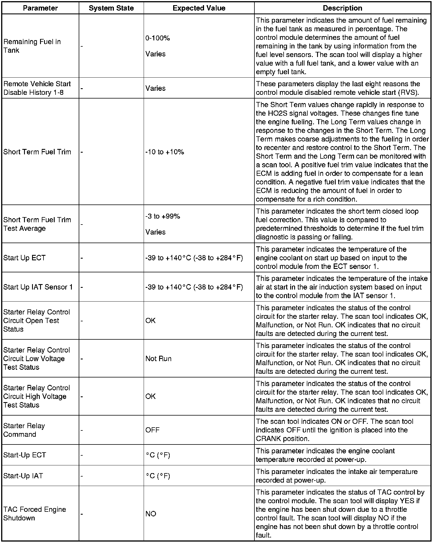 The scan tool values from a properly running engine may be used for comparison with the engine you are diagnosing. The engine scan tool data list represents values that may be seen on a normally running engine.