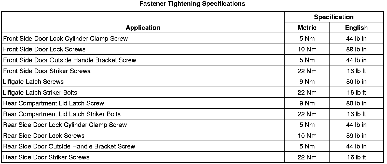 Fastener Tightening Specifications