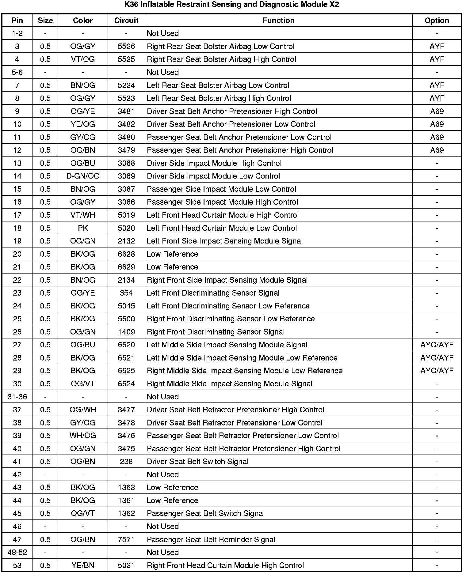 K36 Inflatable Restraint Sensing and Diagnostic Module X2