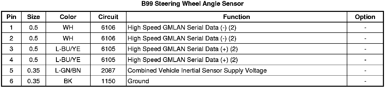 B99 Steering Wheel Angle Sensor