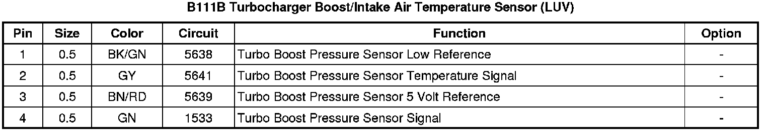 B111B Turbocharger Boost/Intake Air Temperature Sensor (LUV)