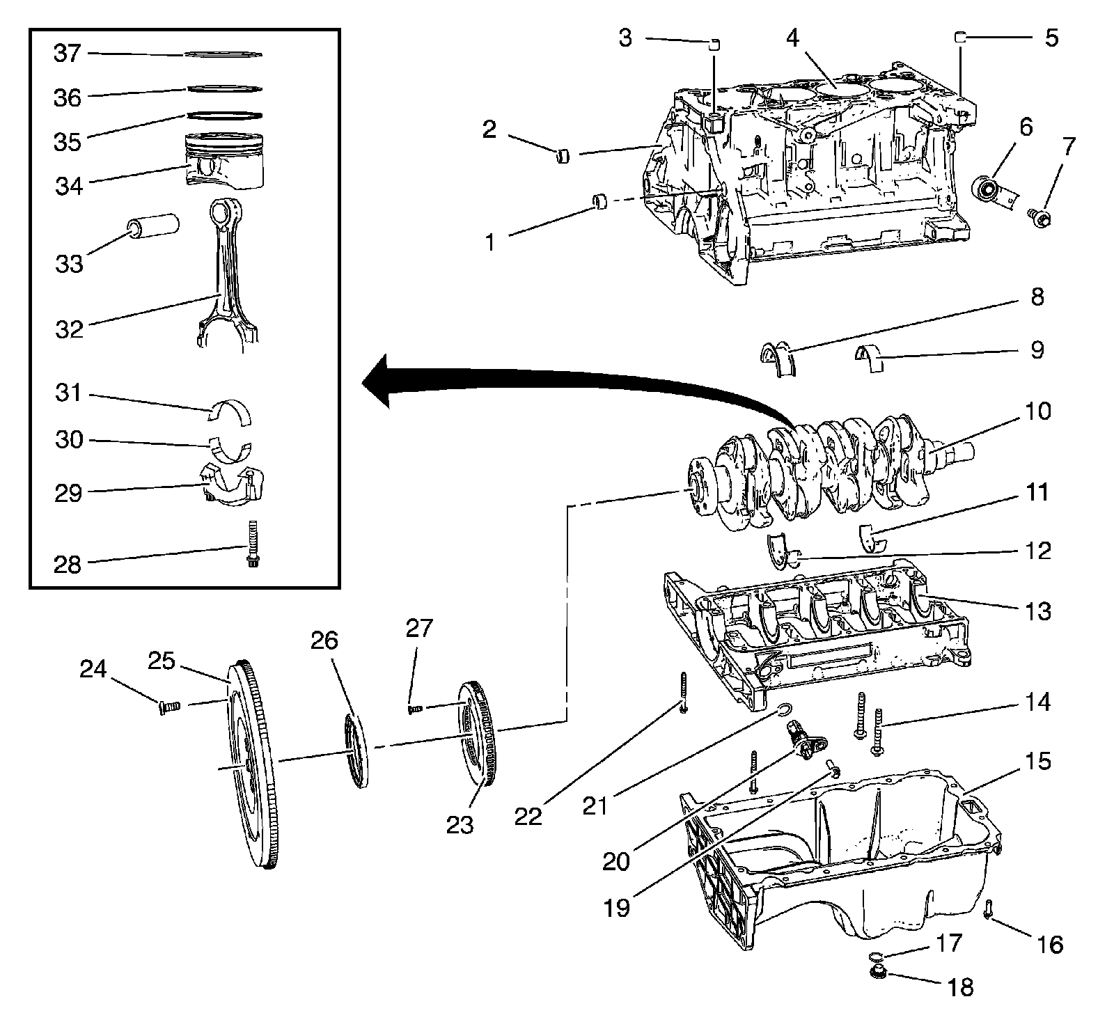 23 - Crankshaft Bearing Cap Tie Plate Bolt (M8)