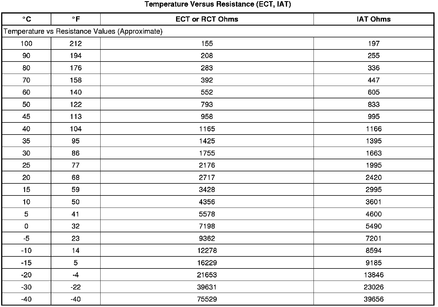 Temperature Versus Resistance (ECT, IAT)