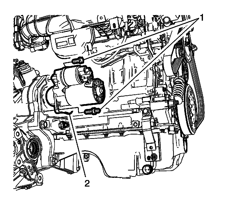 7. Remove the starter mounting fasteners (1) and remove the starter from the vehicle.