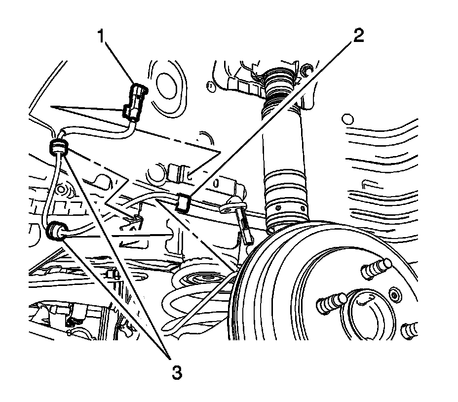 8. Release the wheel speed sensor harness grommets (3) from the bracket.