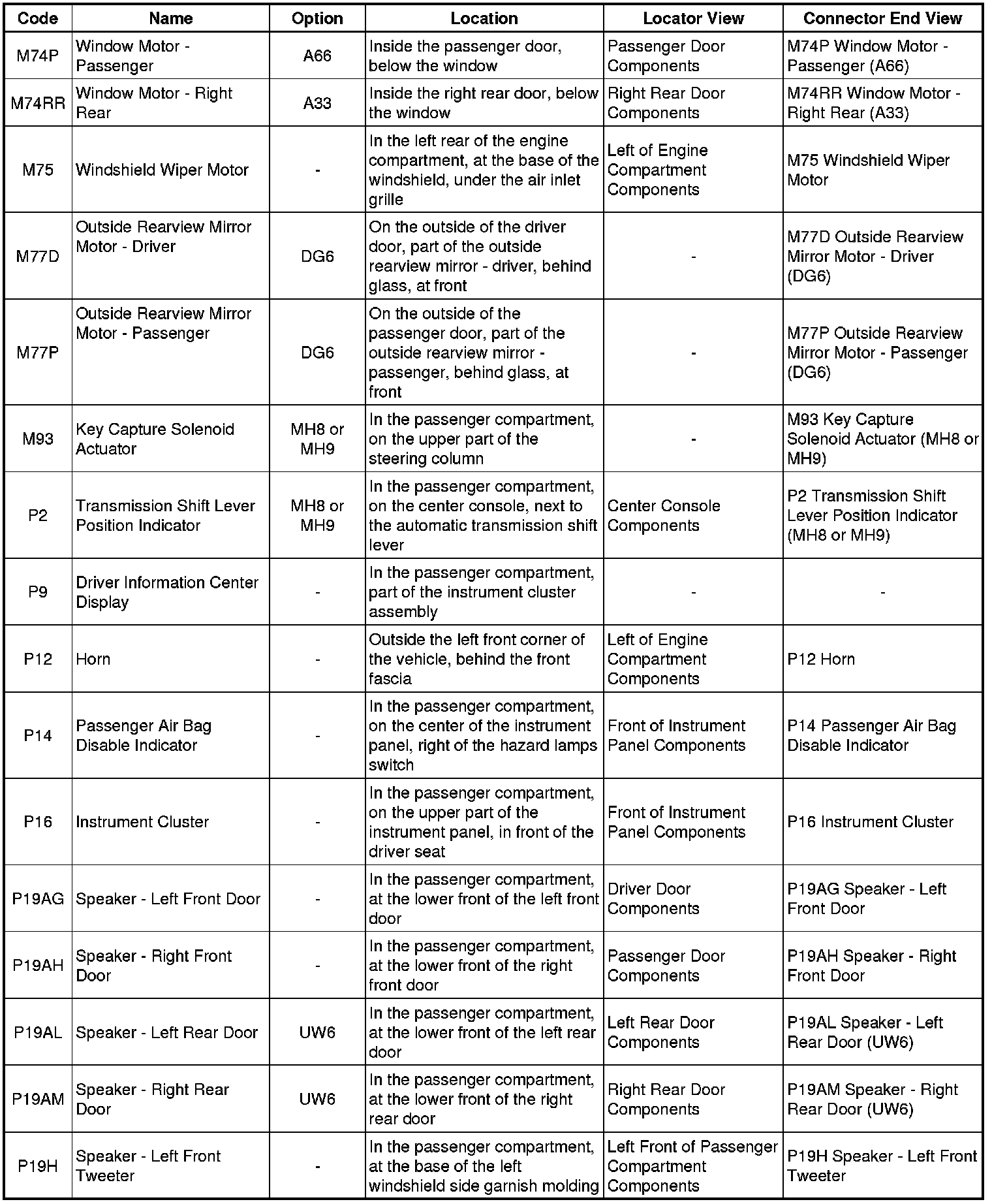 Master Electrical Component List