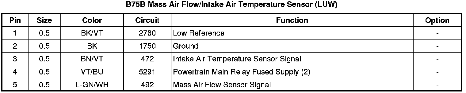 B75B Mass Air Flow/Intake Air Temperature Sensor (LUW)