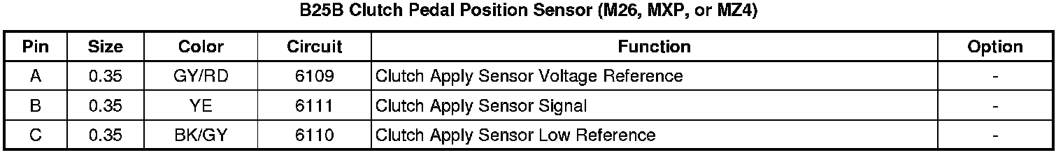 B25B Clutch Pedal Position Sensor (M26, MXP, or MZ4)
