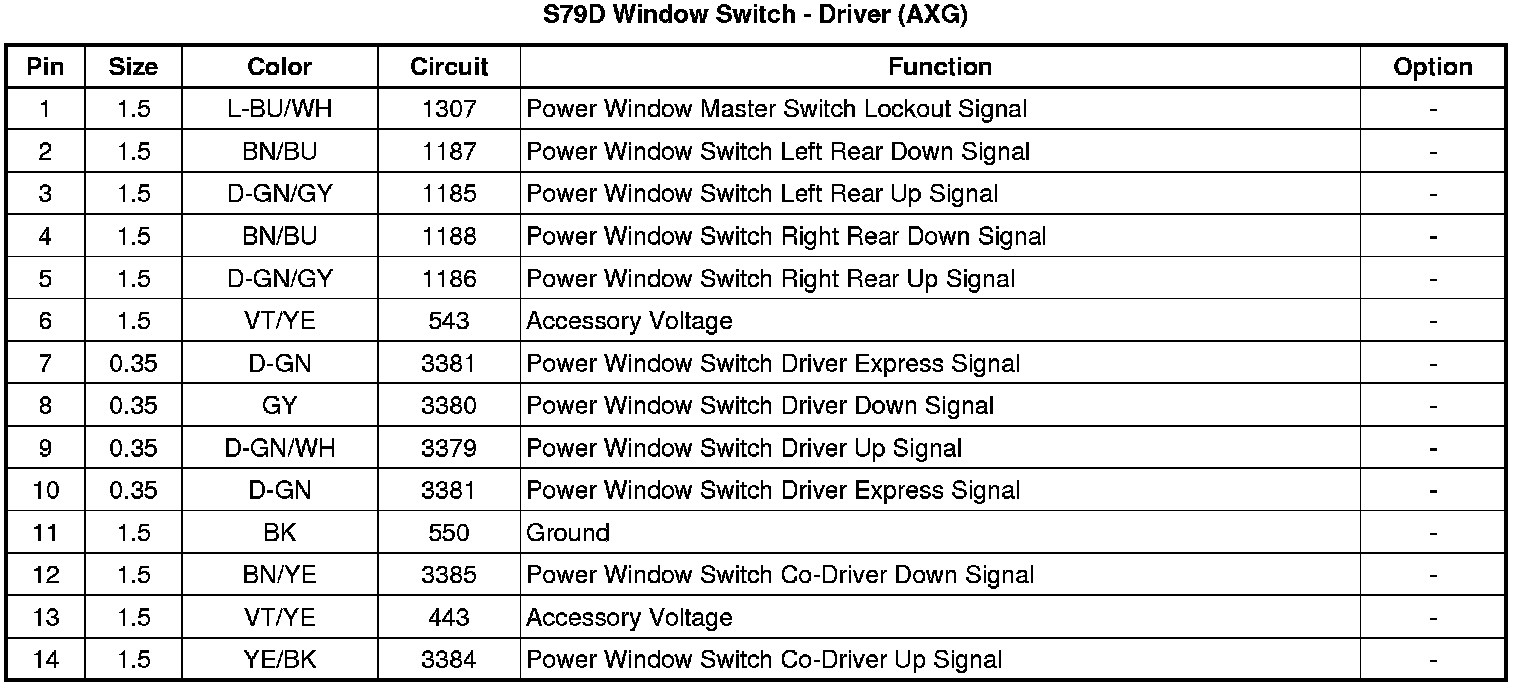 S79D Window Switch - Driver (AXG)