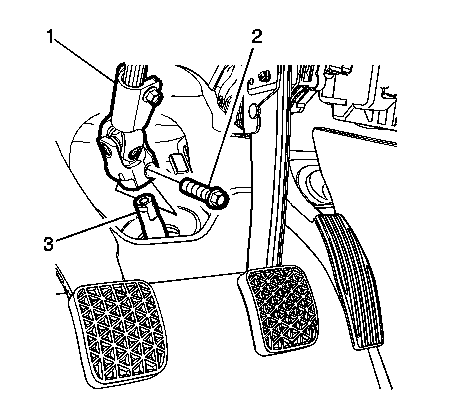 7. Remove the lower intermediate steering shaft bolt (1) and slide the shaft away from steering column. Refer to Intermediate Steering Shaft Replacement Intermediate Steering Shaft Replacement.