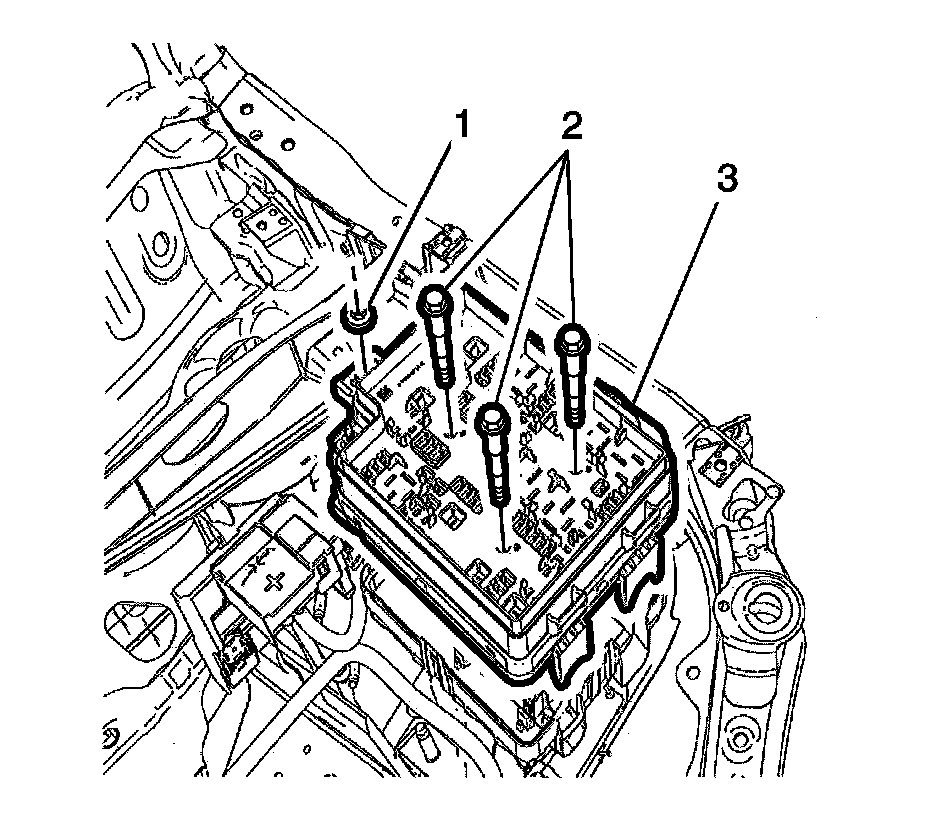 40. Install the junction block bolts (2) and tighten to 5 N•m (44 lb in).
