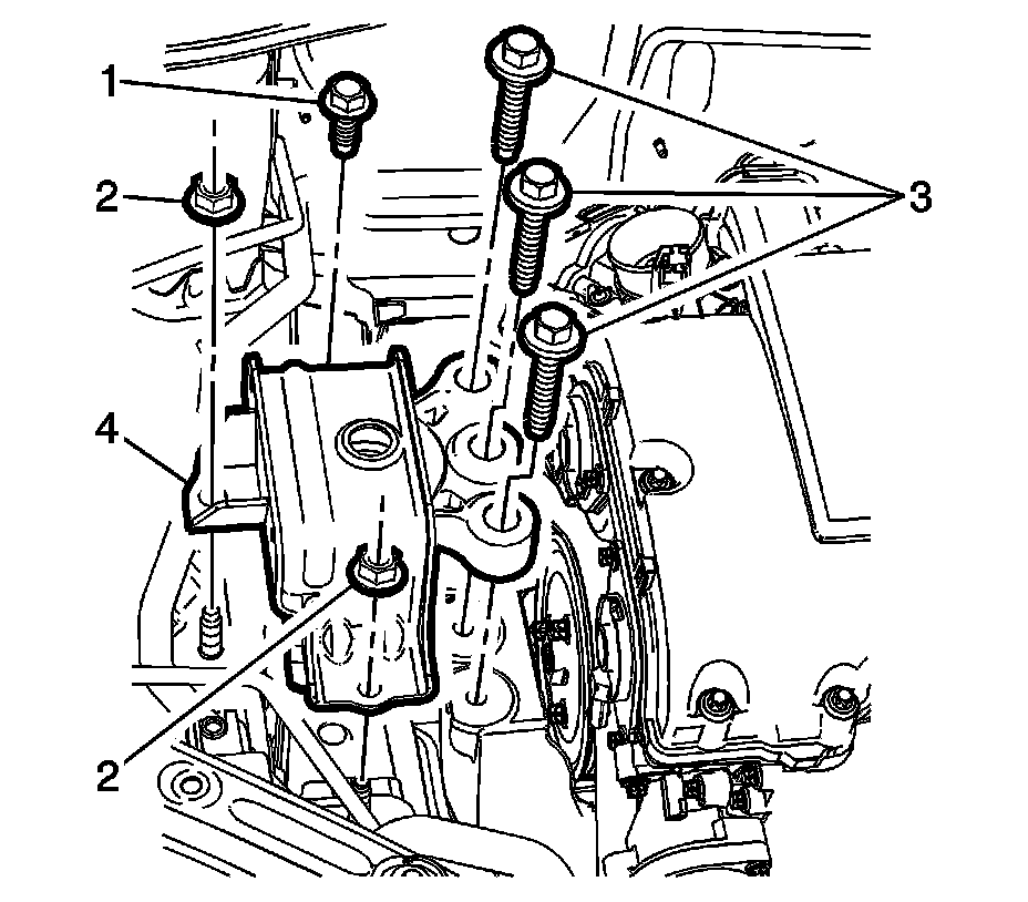 8. Install the right side engine mount (4). Refer to Engine Mount Replacement - Right Side .