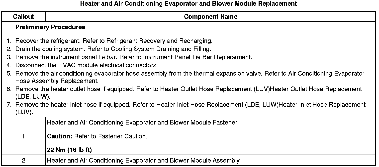 Heater and Air Conditioning Evaporator and Blower Module Replacement