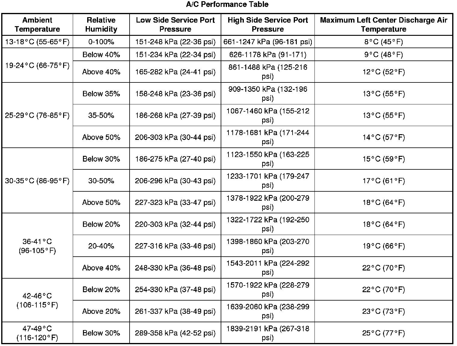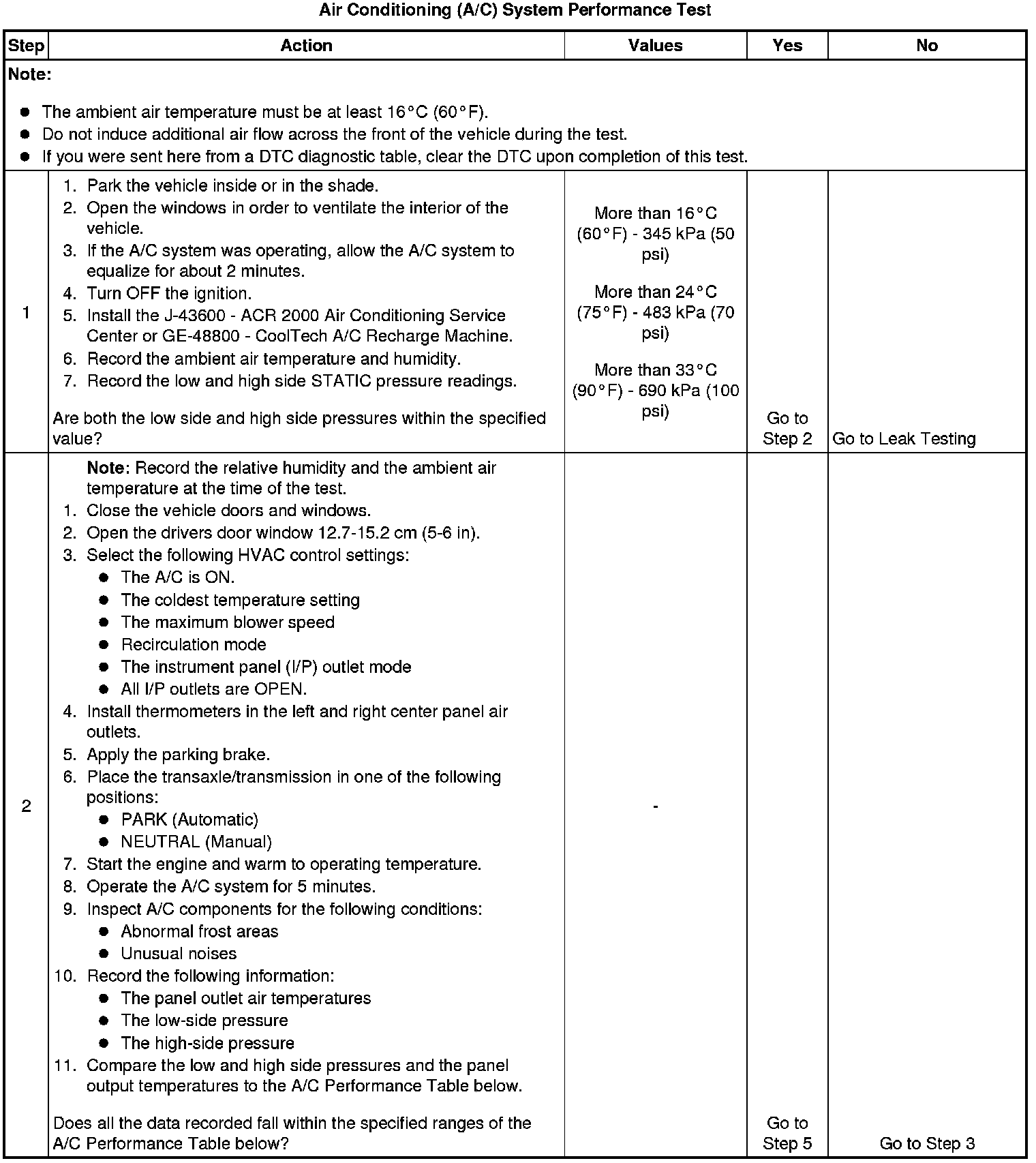 Air Conditioning (A/C) System Performance Test