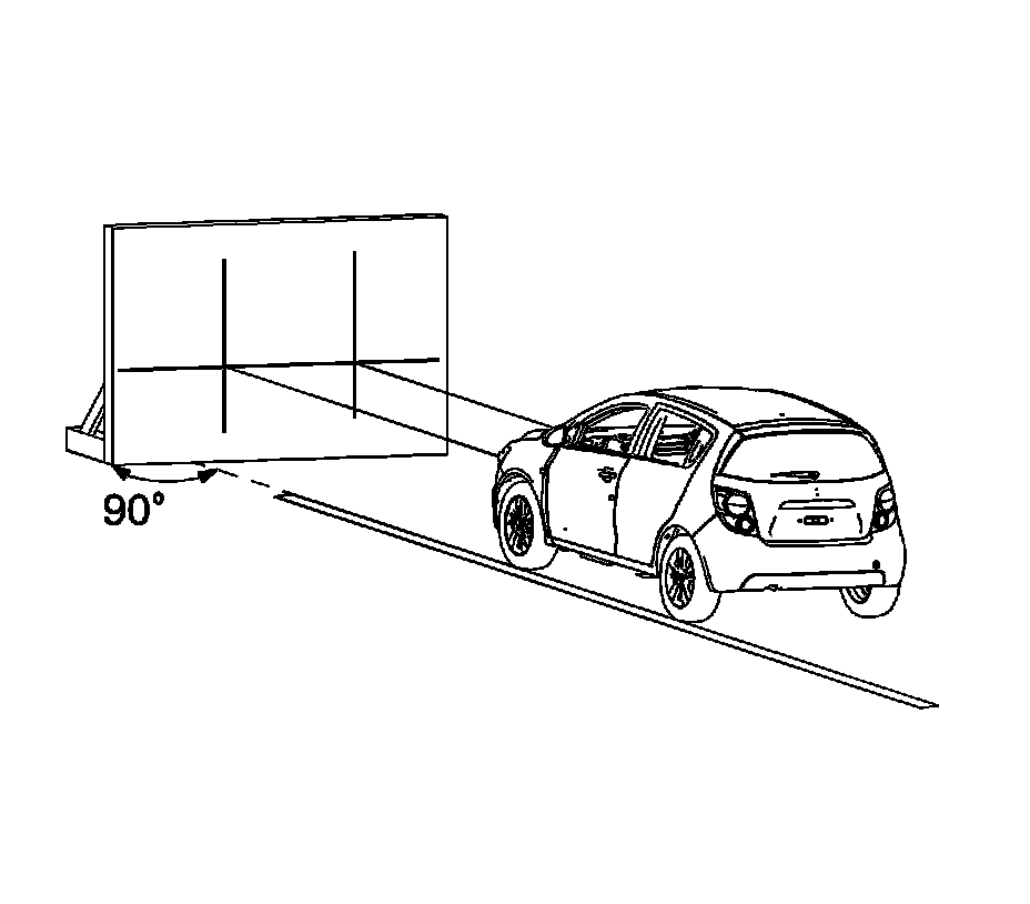 6. The vehicle left tires must be aligned with the reference line extending from the screen with the headlamps aligned with the reference line.