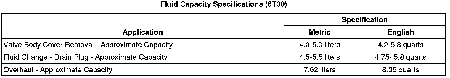 Fluid Capacity Specifications (6T30)