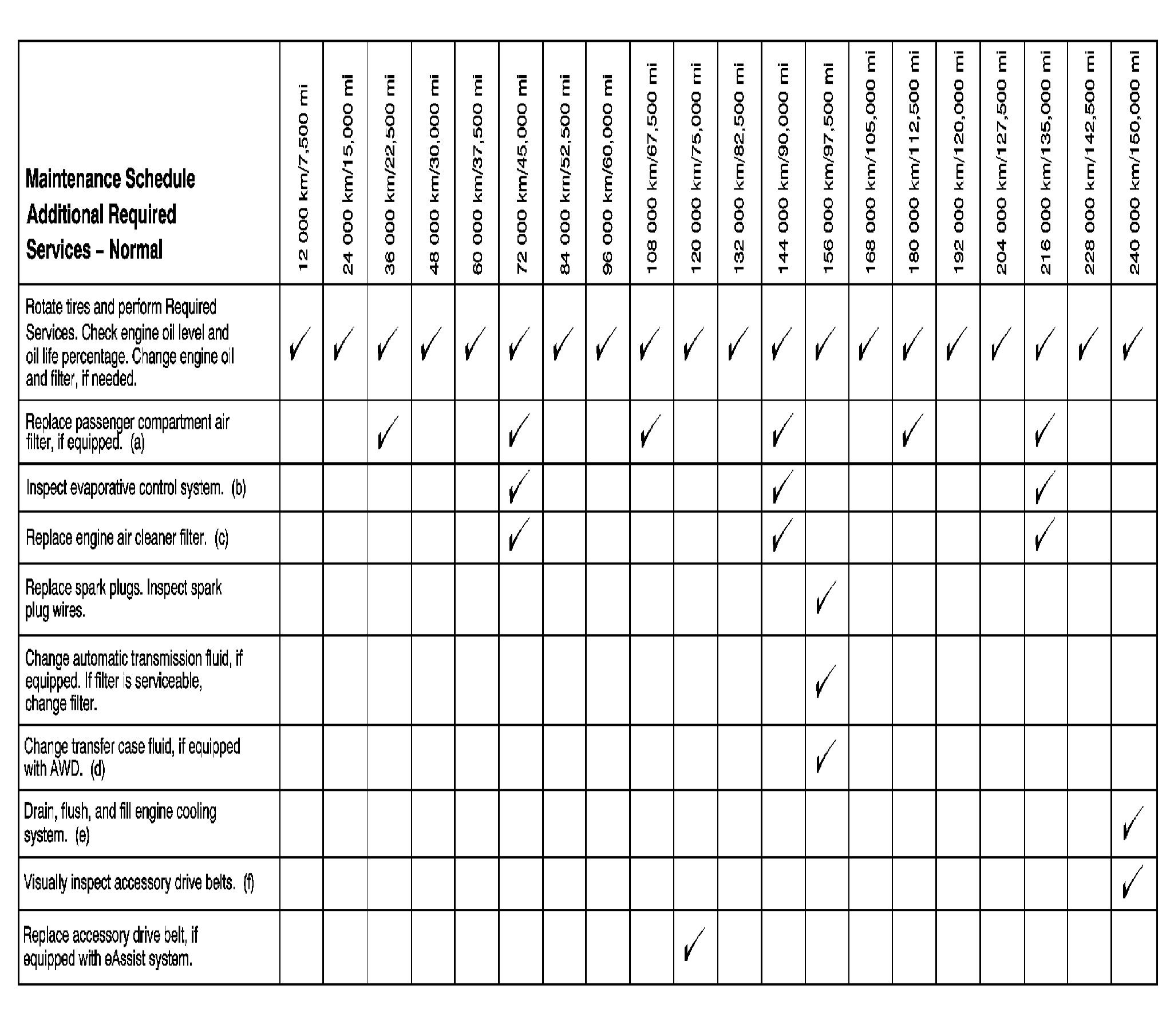 Footnotes - Maintenance Schedule Additional Required Services - Normal